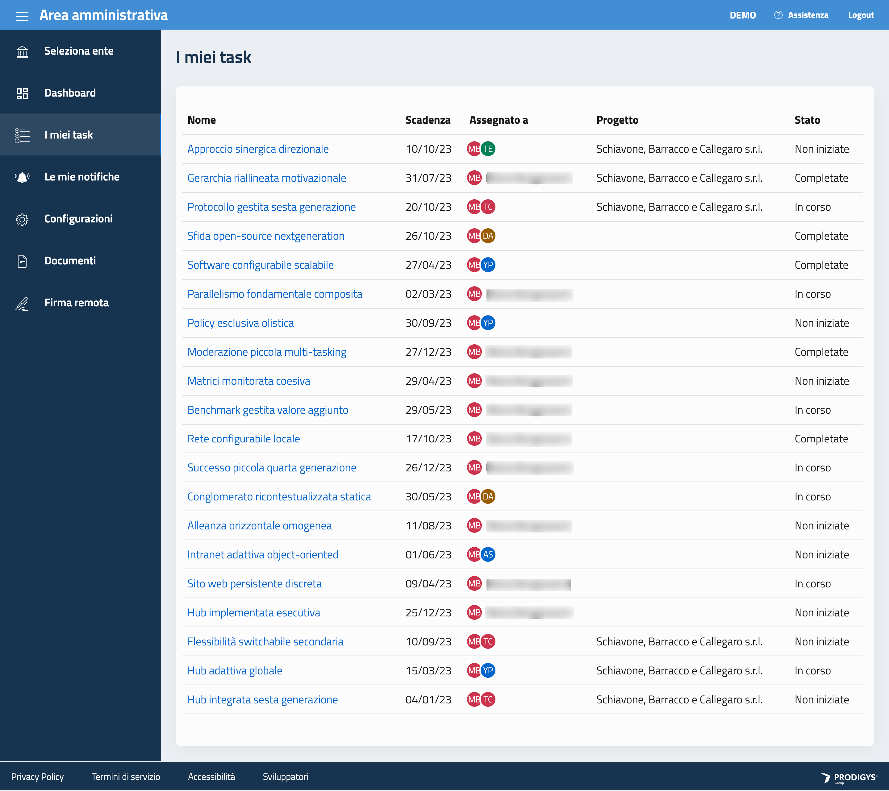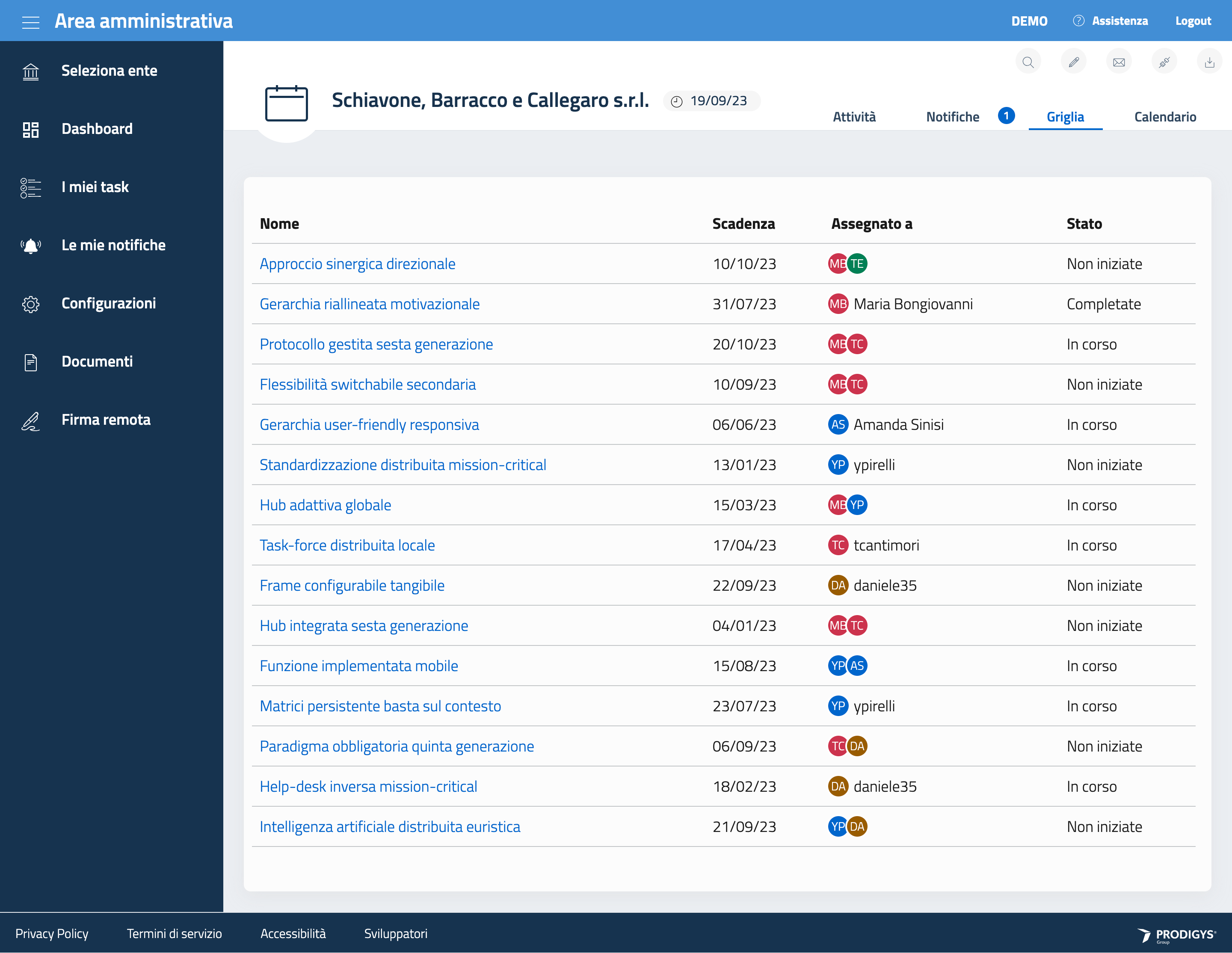 Questa sezione raccoglie sottoforma di griglia tutti i task intra-progettuali assegnati all’utente.
