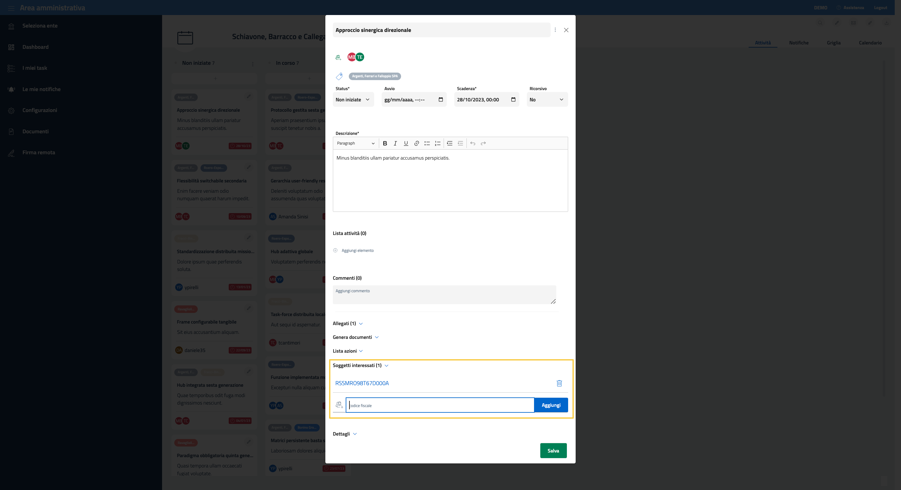 Tramite questa sezione è possibile indicare dei soggetti “Cittadino” coinvolti come diretti interessati nel task.